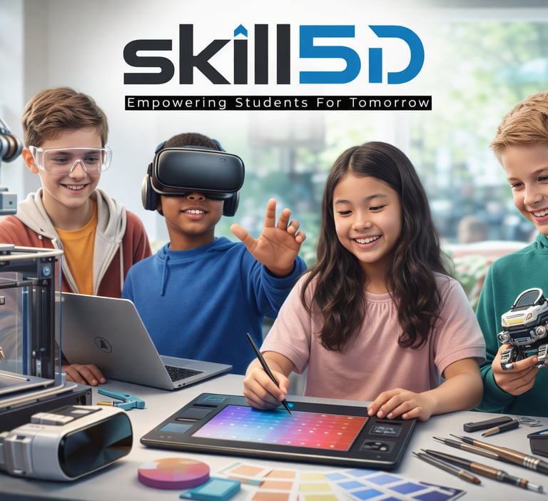 SKILL5D is a creative digital media education initiative designed to bring future-ready learning into classrooms. We believe every child has the power to imagine, create, and lead — and our mission is to help students discover that potential through technology, art, and hands-on experiences.